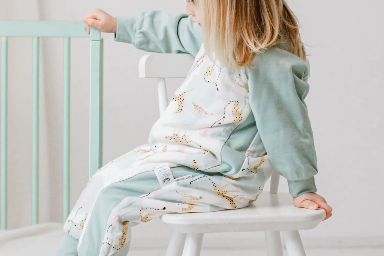 Raglan Long Sleeve Footed Sleep Bag 2.5 TOG (Bamboo) - Cheetah Party