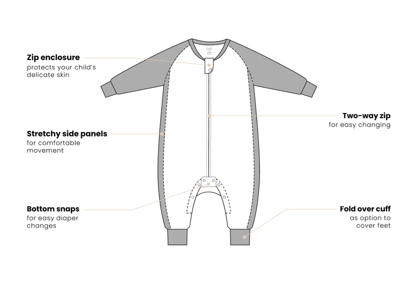 - Protective zipper flap with snaps keeps baby’s skin from getting pinched as you zip.