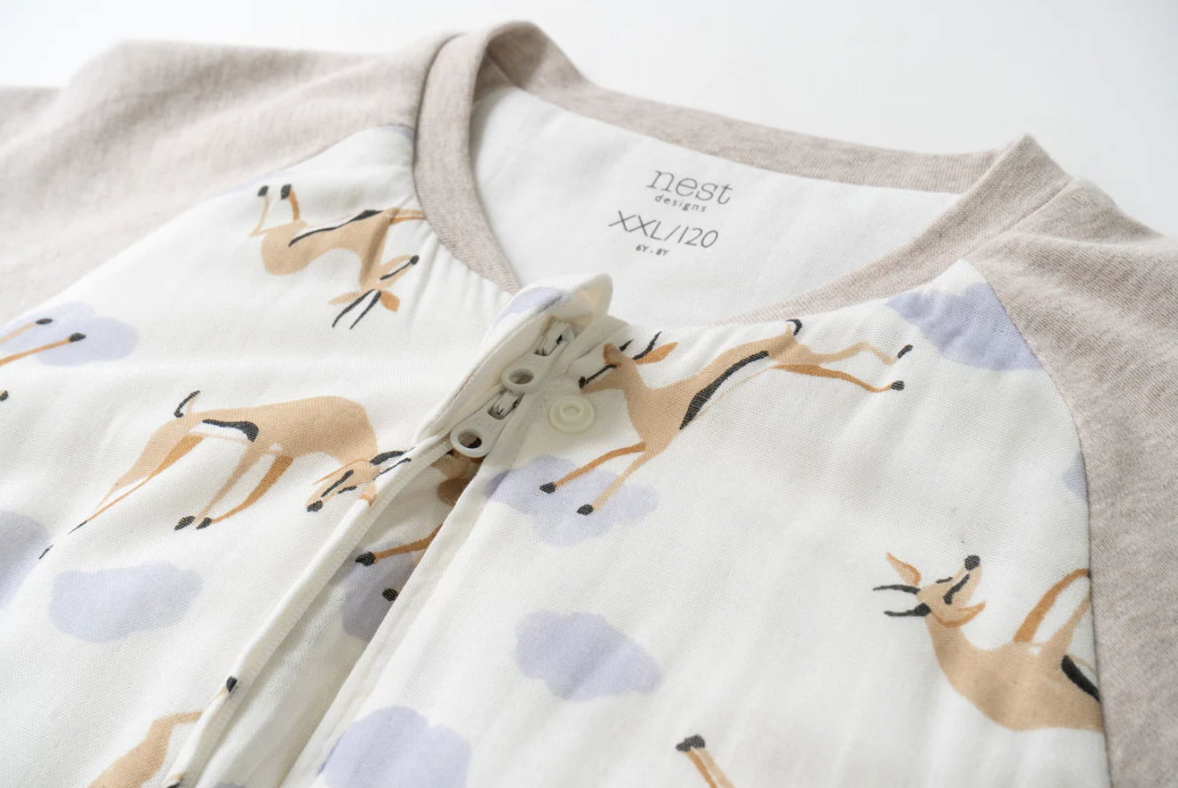 Raglan Long Sleeve Footed Sleep Bag 2.5 TOG (Bamboo) - Gazelle Sky