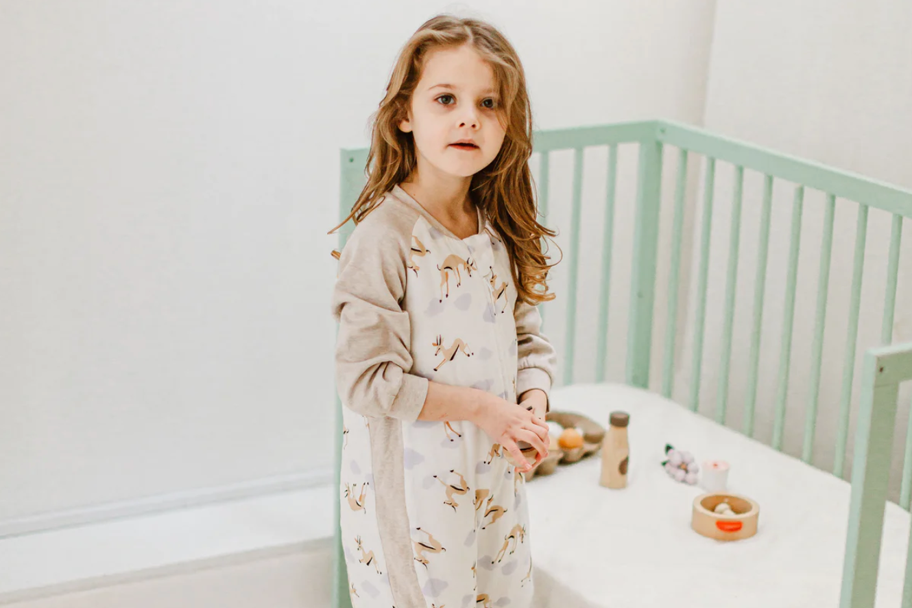 This soft and warm footed sleep bag is perfect for little adventurers who love to roam and explore, but aren't quite ready for a big kid blanket. Our bamboo cotton blend is silky smooth on sensitive skin, while our fluffy Sorona fill adds extra warmth for those colder nights. Designed with stretchy side panels for added movement, and fold over ankle cuffs to cover those tiny toes, your mini mover will stay comfy and covered all night long.