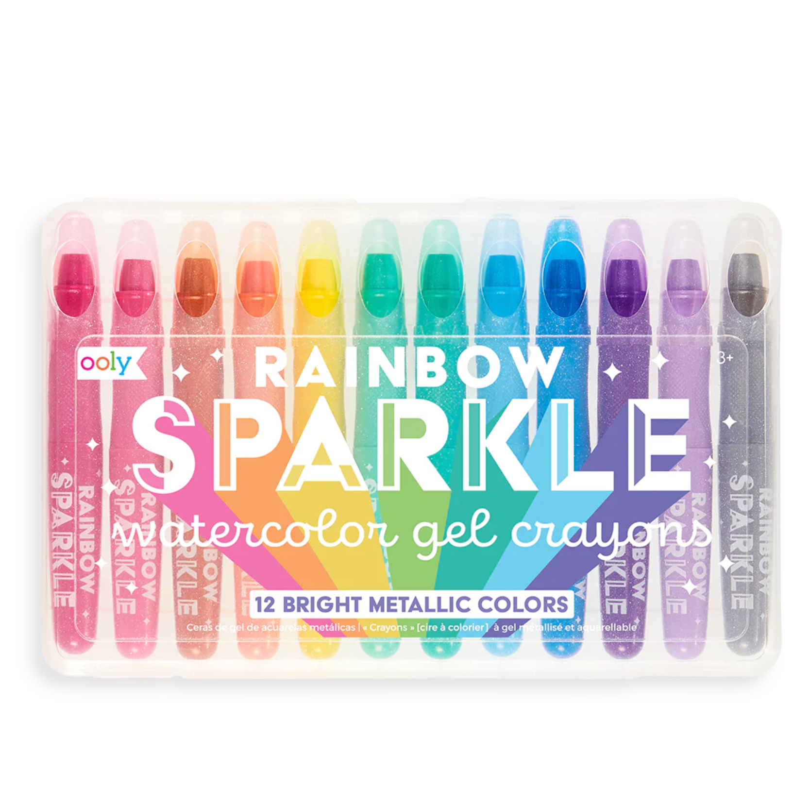 Create bold strokes of color and watch them magically change when you add water. Rainbow Sparkle Gel Crayons are made with a solidified gel that makes bolder and smoother strokes than normal crayons. Add a wet paintbrush for watercolor effects for truly unique works of art. Comes with 12 colored gel crayons with a thick contoured grip for comfort. Also writes on black paper. New Look! Formerly called Sparkle Watercolor Gel Crayons.