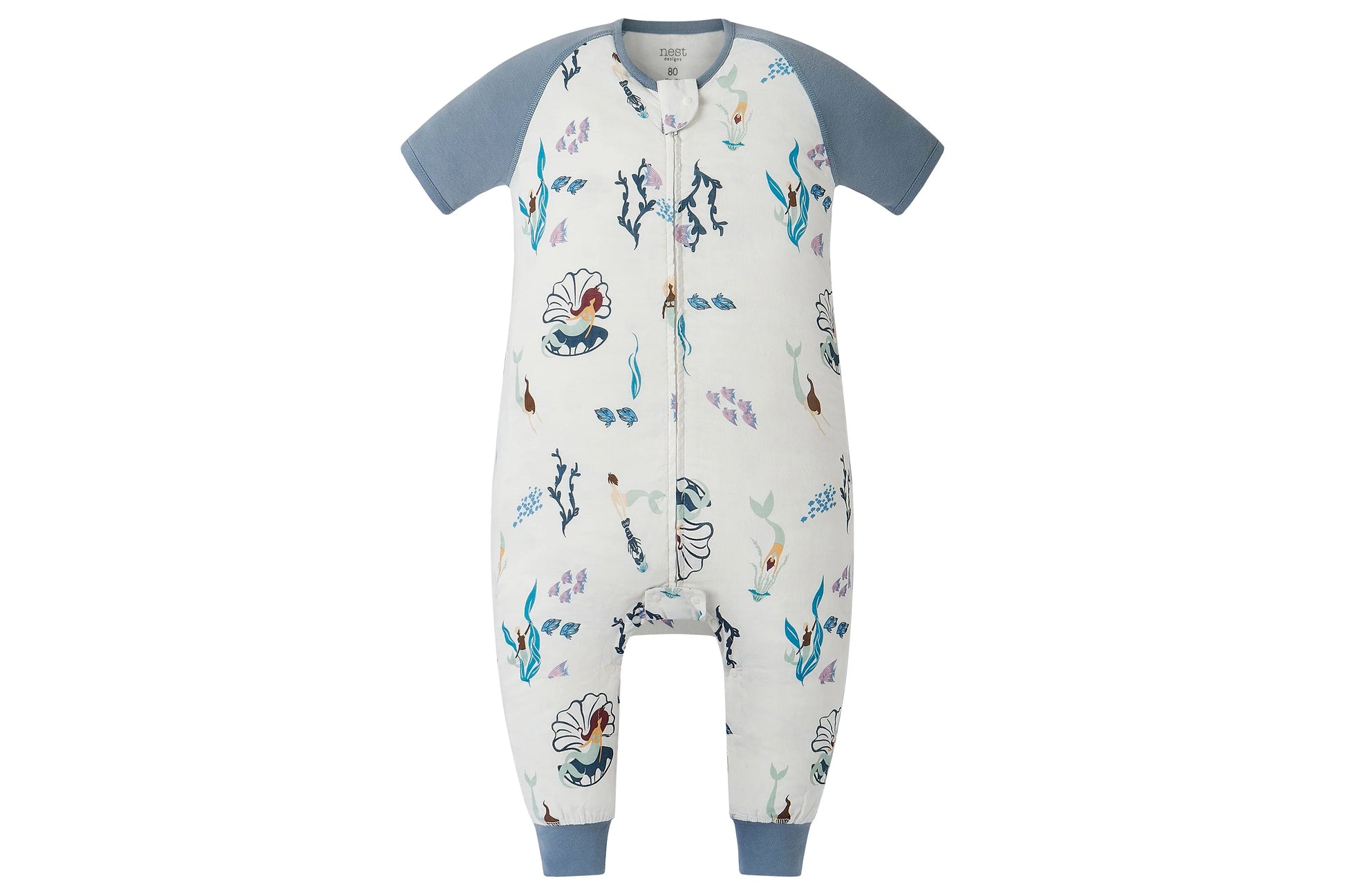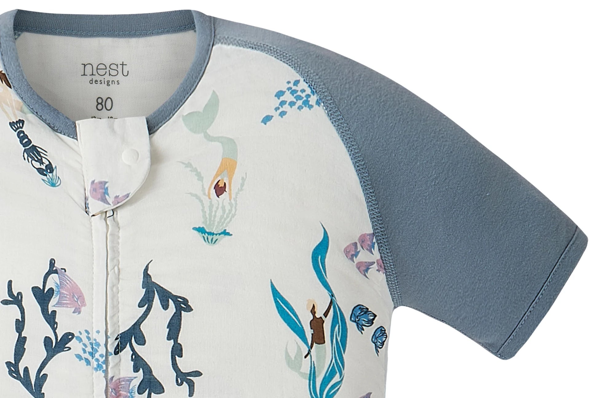 Short Sleeve Footed Sleep Bag 0.6 TOG (Bamboo Pima) - Splish Splash