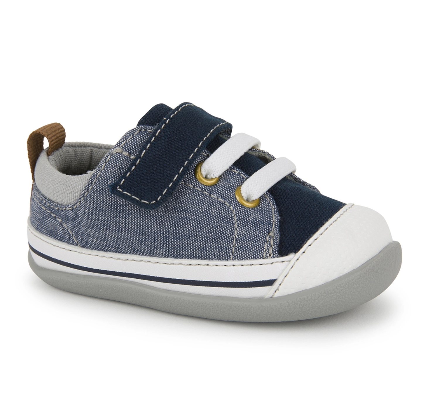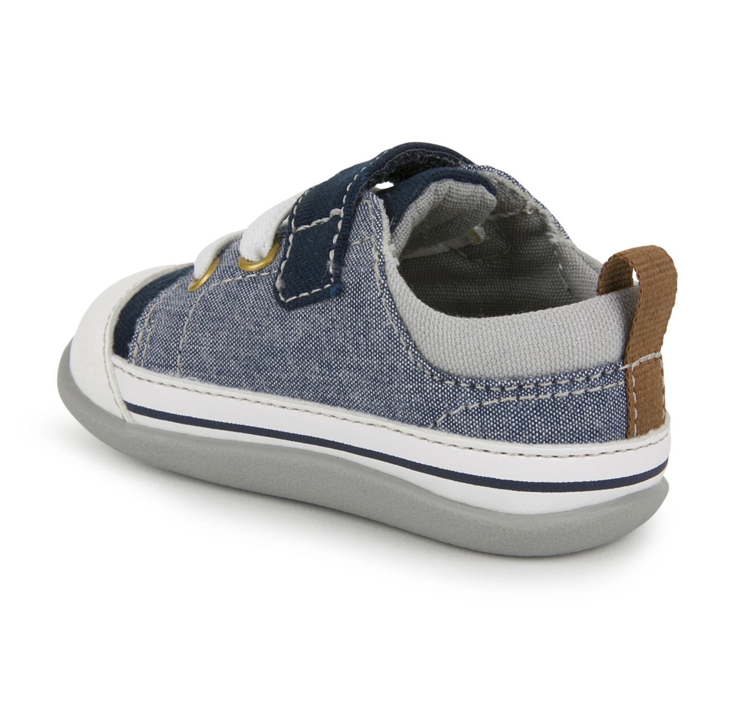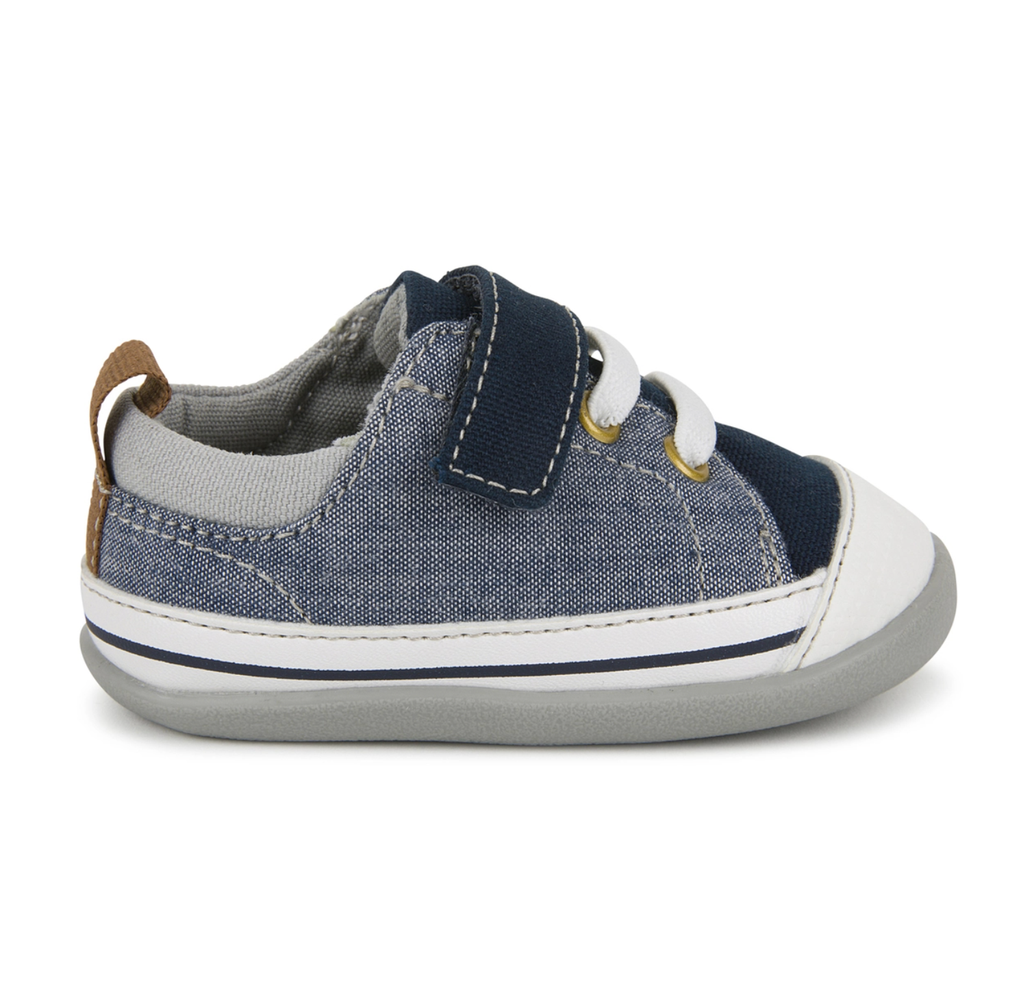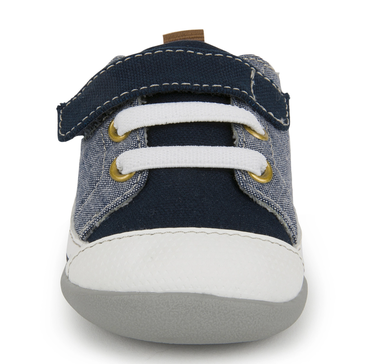 - Full rubber outsole provides flexibility, traction, and durability for early steps