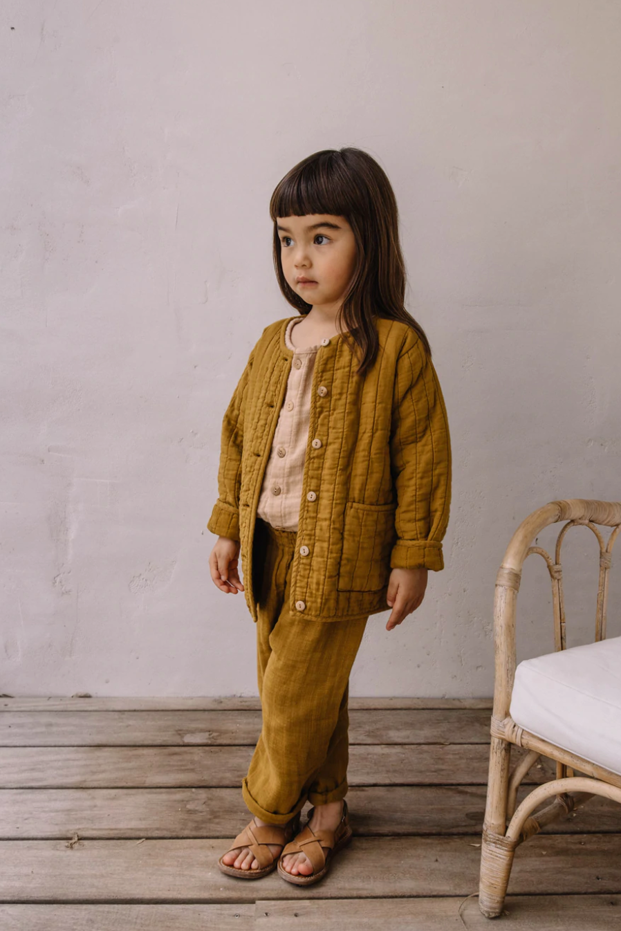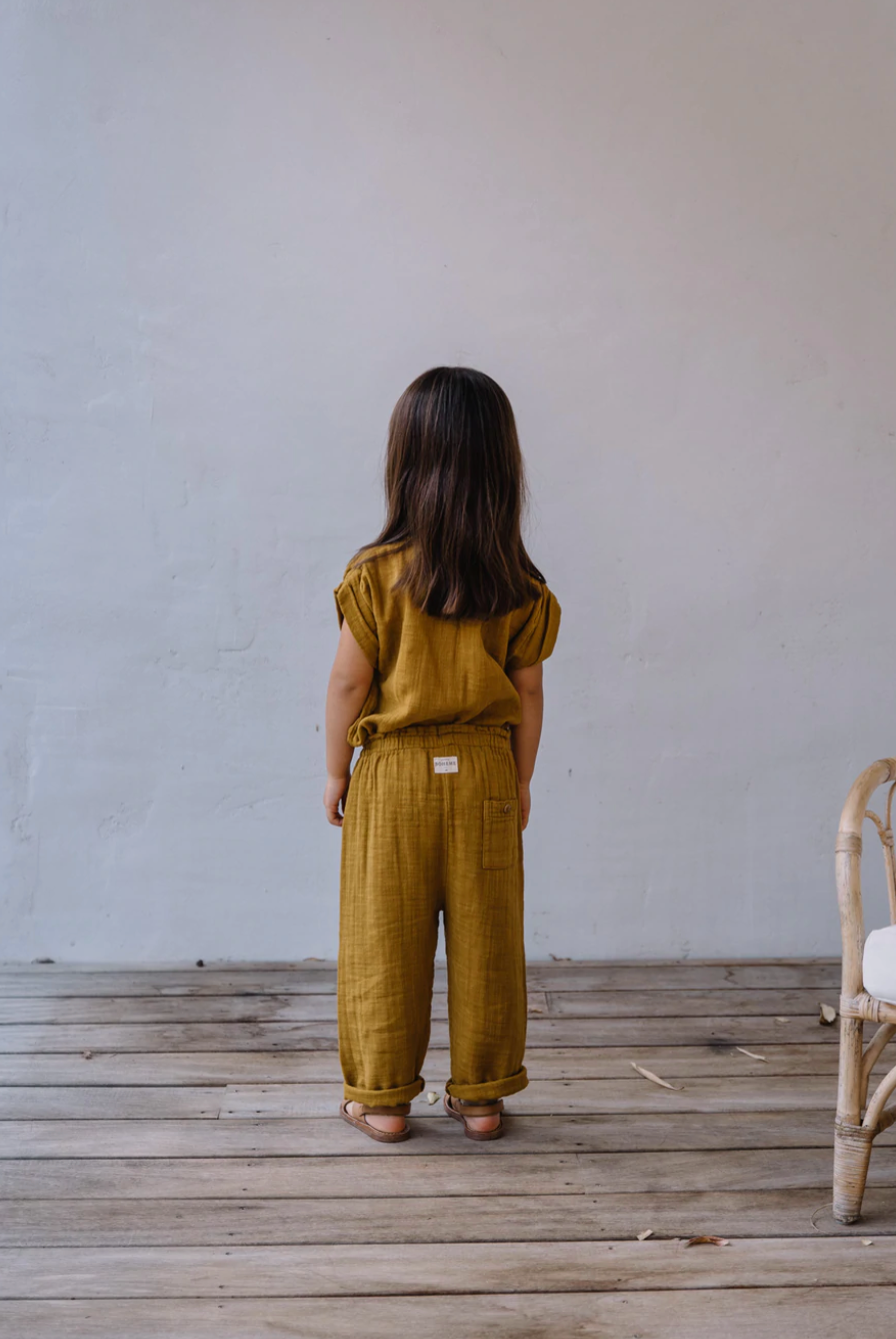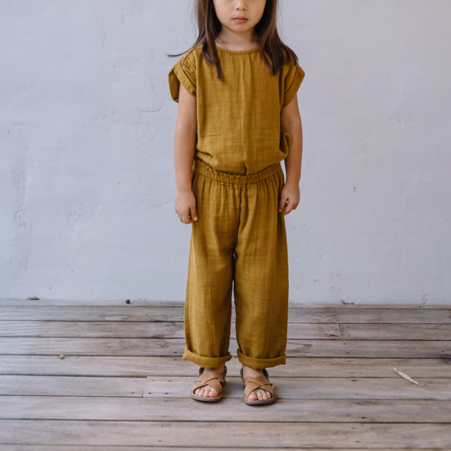 Comfortable unisex Thai-style wide-leg pants in organic slub cotton gauze.