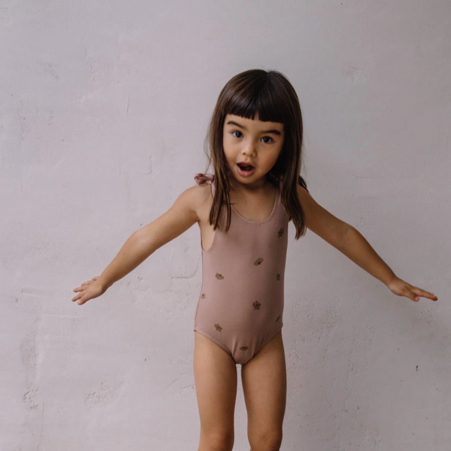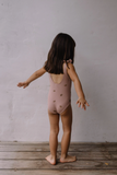 1-piece swimsuit in organic cotton jersey. Round neckline. Adjustable straps to tie on the shoulders.