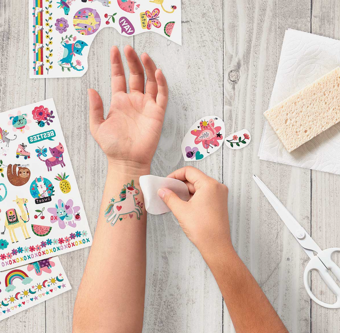 Show off your wild side with this set of fun Dino Days temporary tattoos. Easy to apply and lasts up to 5 days. Non-toxic. Dino Days temporary tattoos 3 Sheets with over 50 tattoos per sku Easy to apply Tattoos last up to 5 days Adult supervision advised Suitable for ages 3 and up