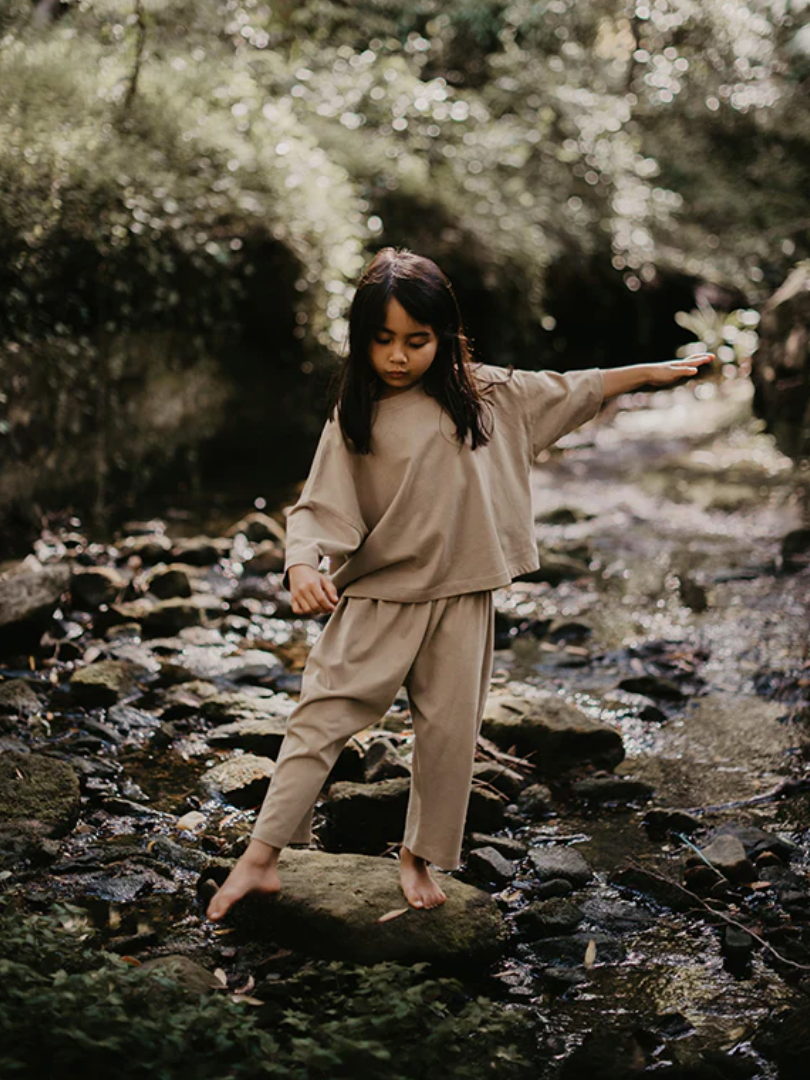 Our Alex Trouser is a daily wardrobe staple made from the most delightfully soft, carbon-brushed organic cotton. It features a relaxed fit, perfect for free-spirited movement and play, and an elasticated waistband for an exact fit.