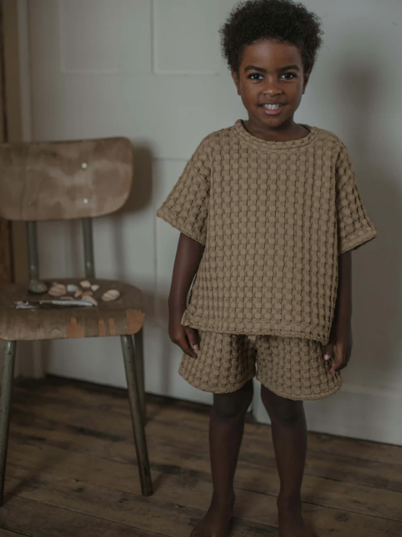 Oversized for the most comfortable fit, The Bay Top is crafted from our delightfully soft, breathable chunky organic cotton waffle. It features a boxy shape, cropped sleeves, snaps at the shoulder, and split side seams to make tucking all the easier.