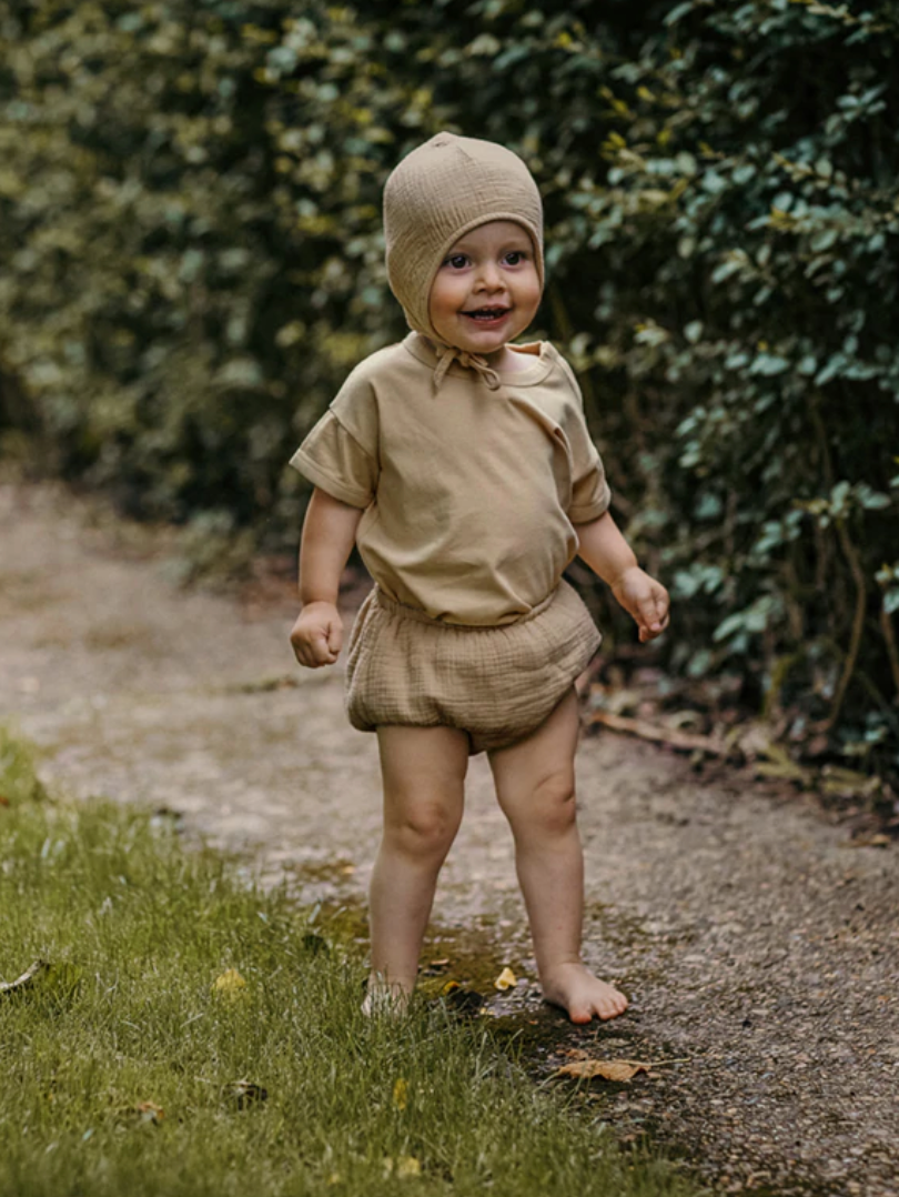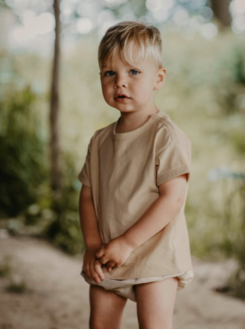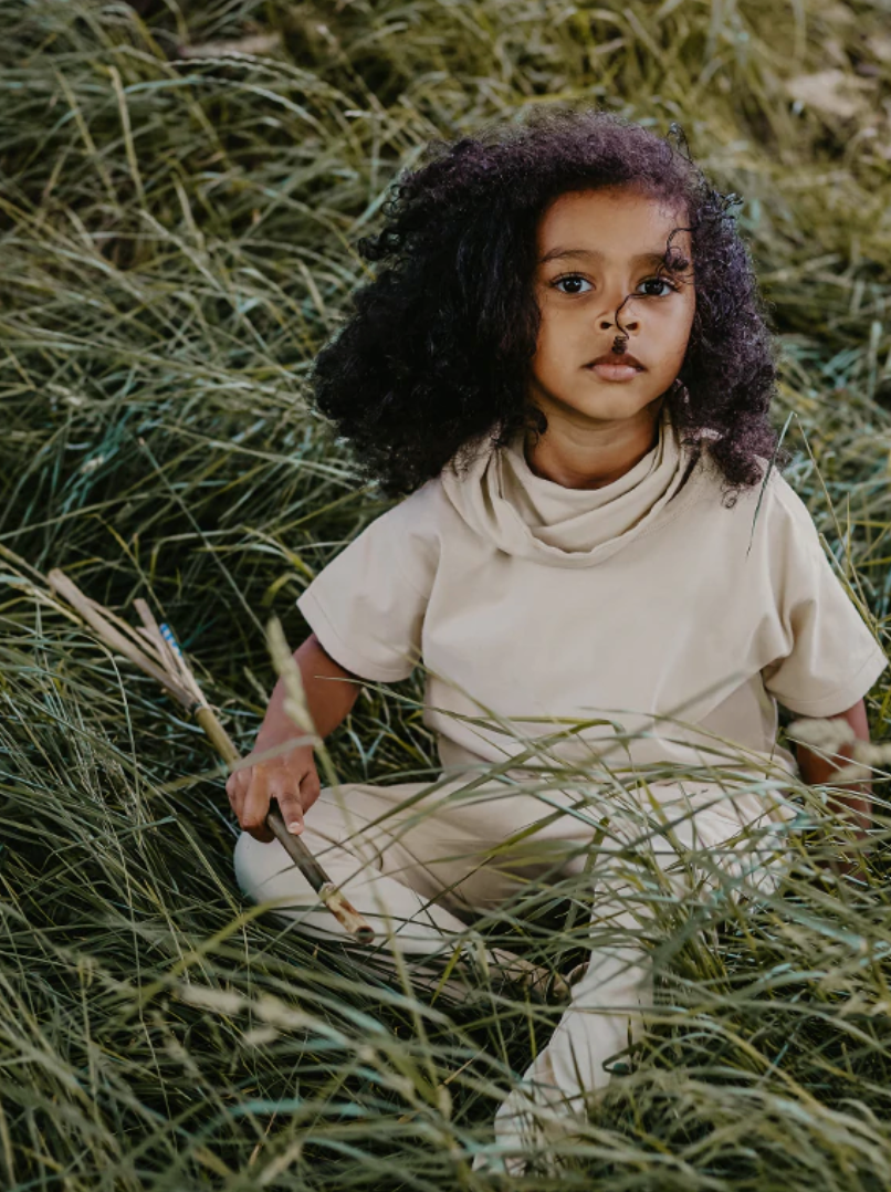 Designed with play, movement, and comfort in mind, our oversized, boxy tee features relaxed sleeves, snaps on one shoulder for easy on and off, and is made with luxuriously soft organic cotton.