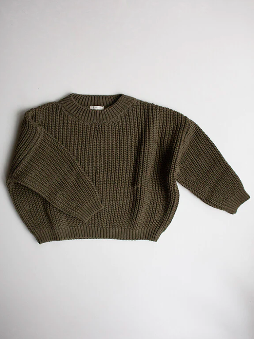 Finally a sweater version of our best-selling chunky cardigan! With a relaxed, slouchy fit, and a chunky ribbed neckline and cuffs, our loose-knit sweater made from 100% organic cotton is the cool weather essential that dreams are made of.