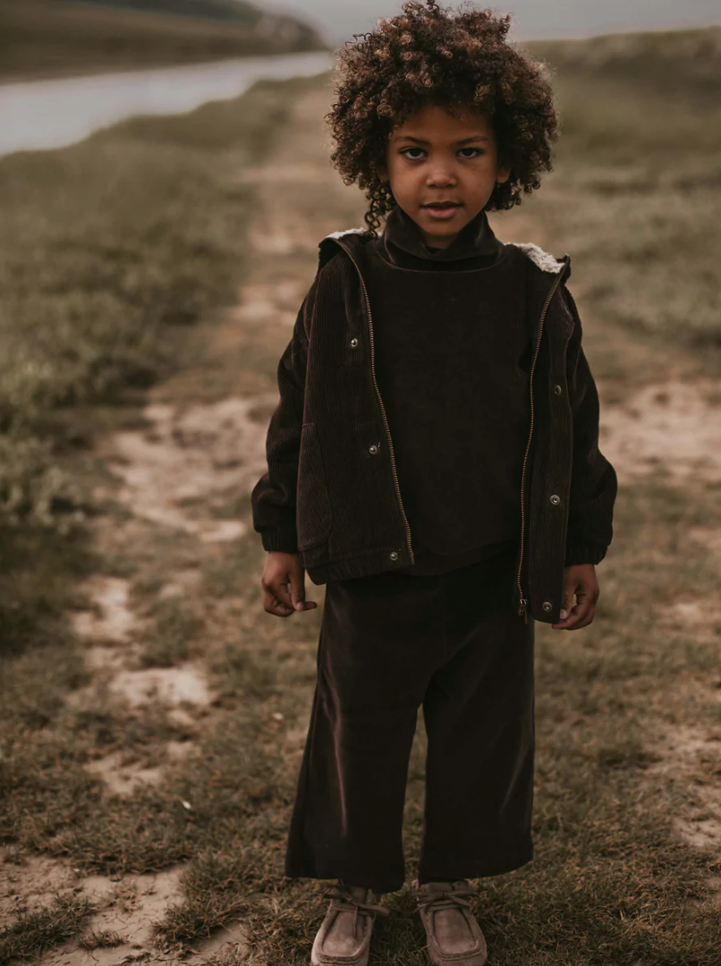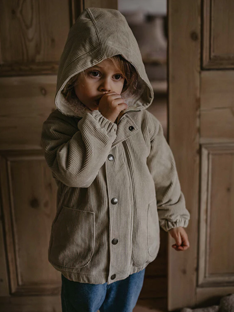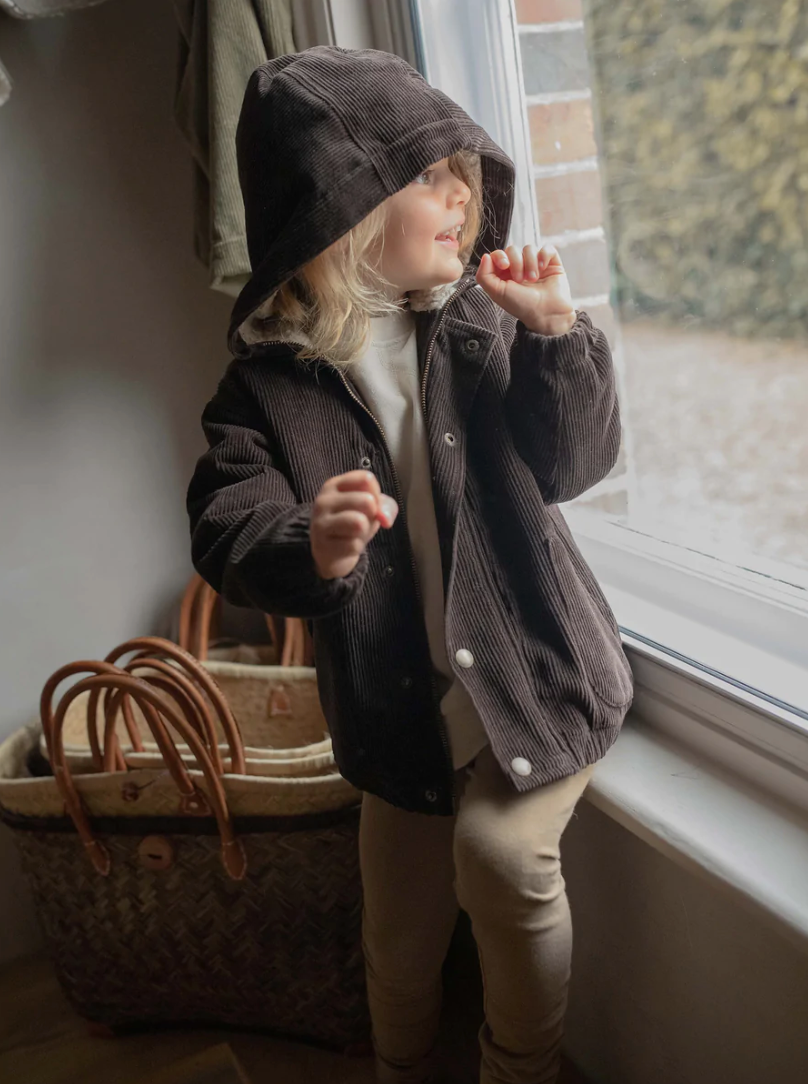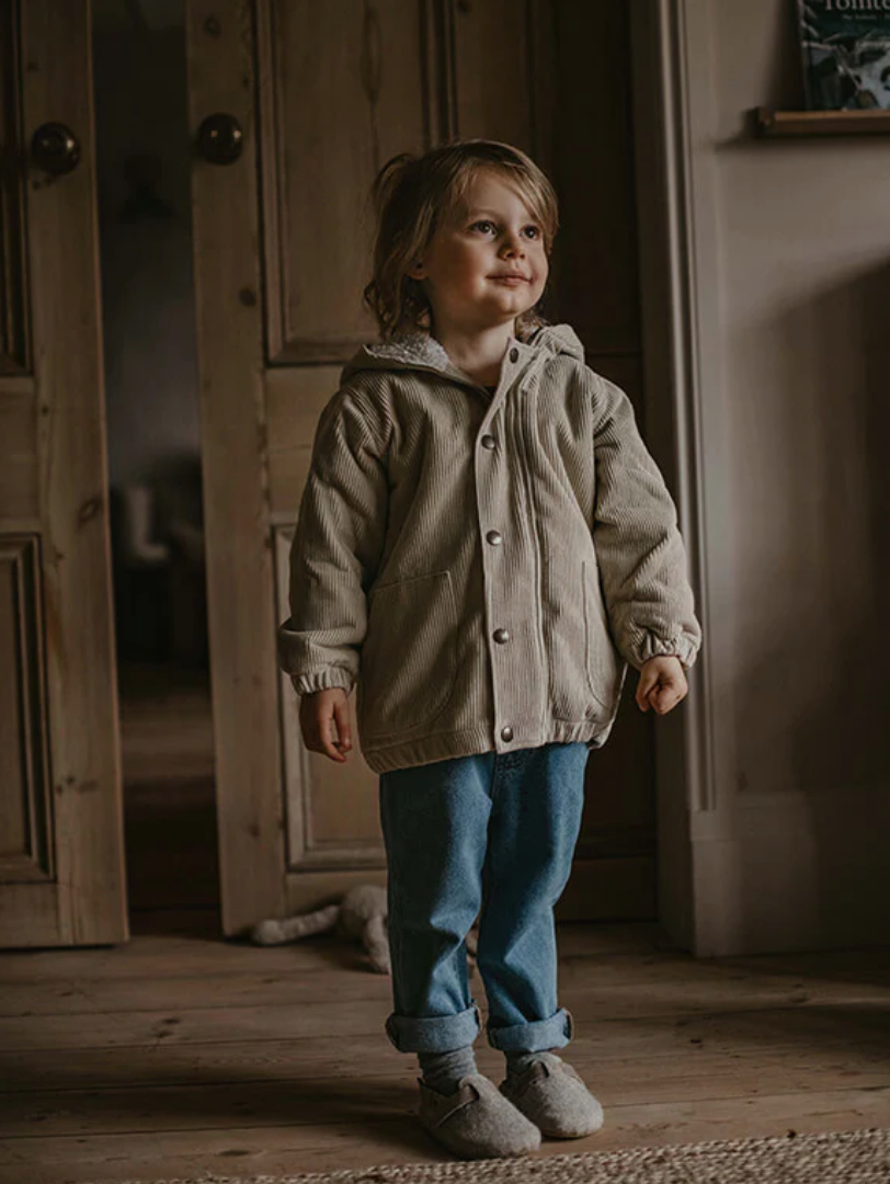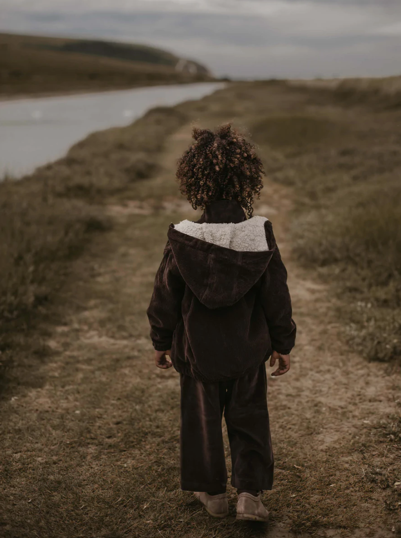 Perfect for winter nature walks and colder evenings, The Corduroy Coat is lovingly made with our classic cotton corduroy lined with warm, ethically sourced organic sherpa. This oversized, vintage-style coat features antique brass snaps with a matching zipper down the front, elasticated cuffs and bottom, and a cozy hood to keep your children comfortable on the chilliest of days.