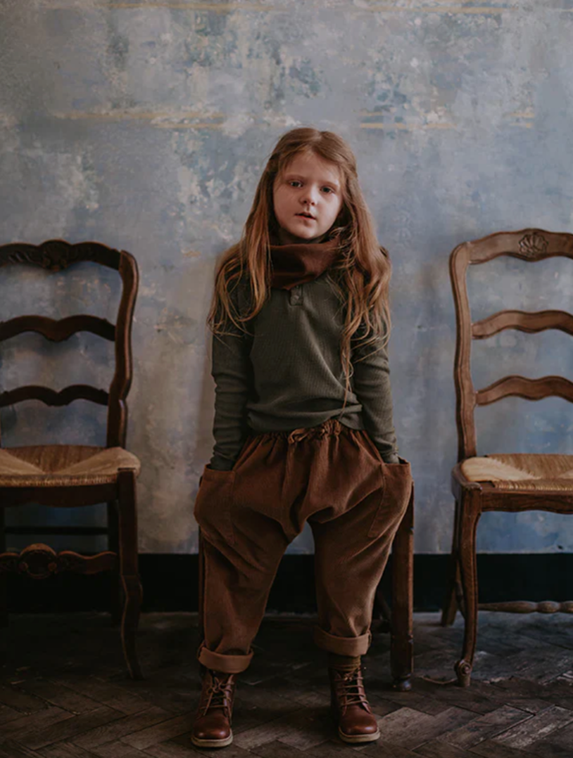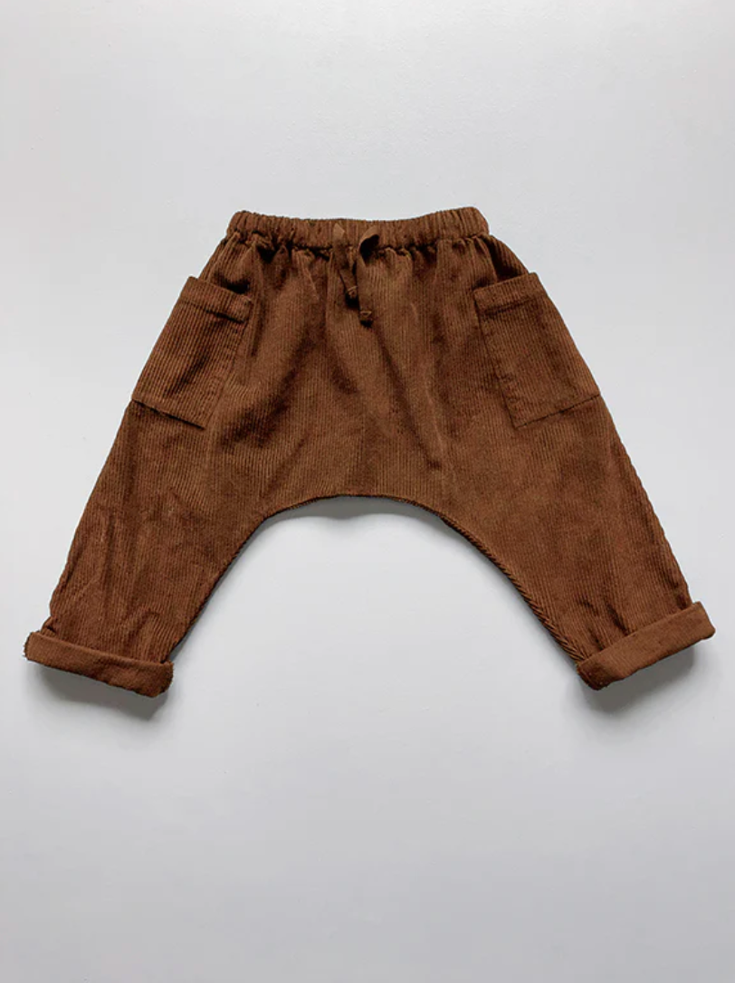 With patch pockets and a drawstring at the waist for a perfect fit every time, our soft corduroy trouser has a dropped crotch for a comfortable and stylish, harem silhouette.