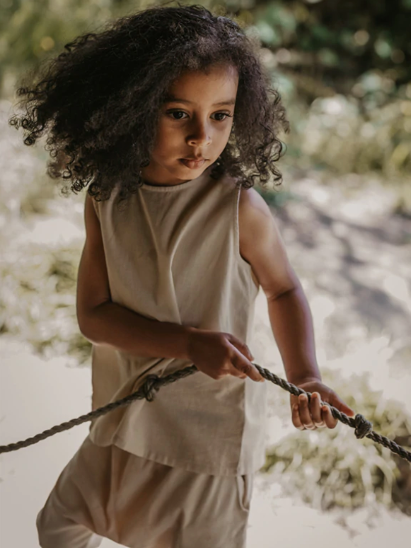 Beloved for its style and versatility, this super soft, easy, breezy tank pairs well with most any bottom, and is charming when worn on its own or as a layering piece. It features a simple silhouette and three darling snaps in brushed brass down the back neckline.
