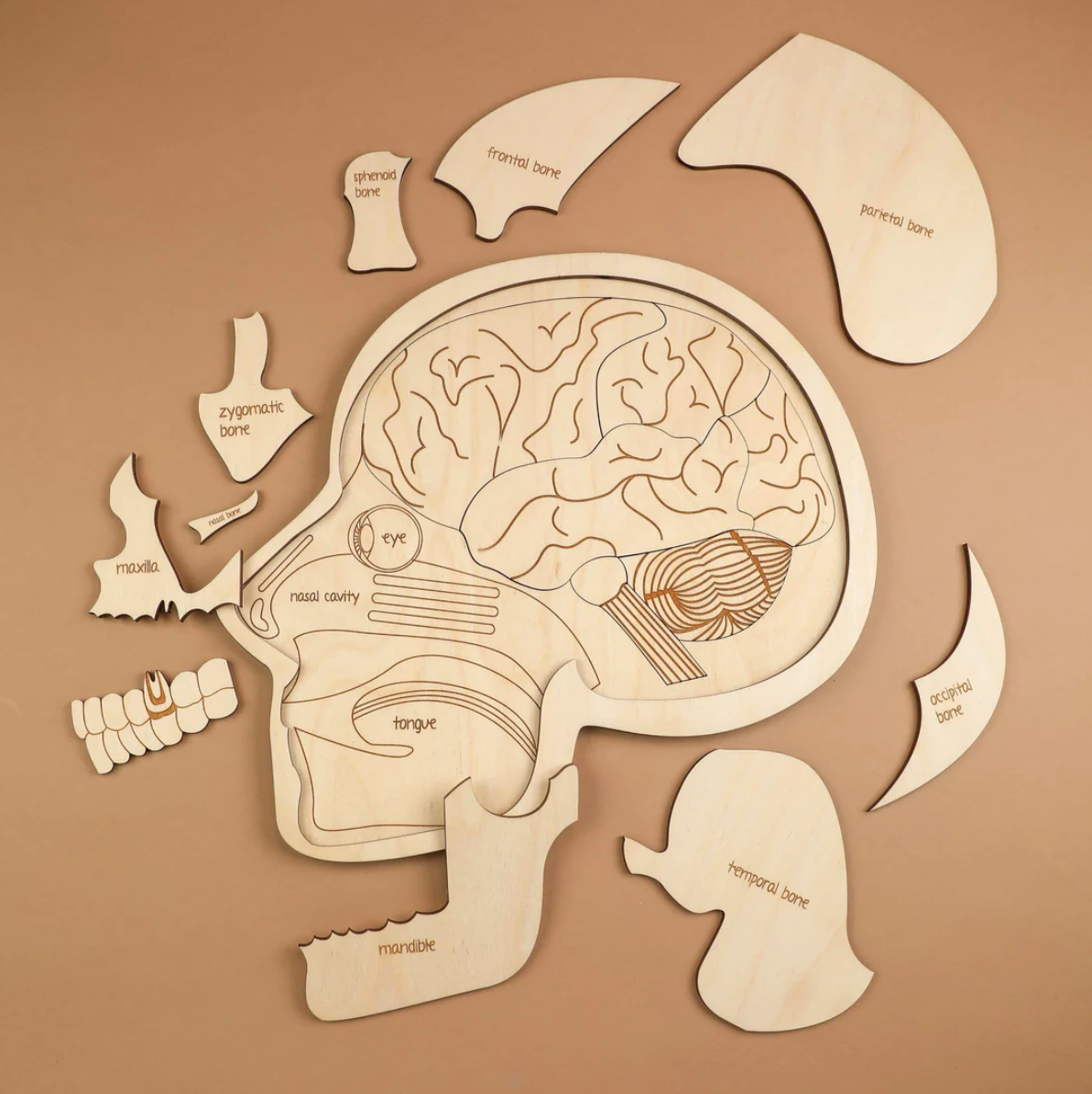 Discover the beauty and wonder of the human brain with this gorgeous Use Your Head Wooden Puzzle. Help your child learn how the brain works, what it's made of and how it functions. It's a wonderful, well-crafted educational toy with a close-to-accurate representation of the human brain. The puzzle is made of three layers that help discover the different layers of the brain. It's a fun toy that both children and adults can learn from!
