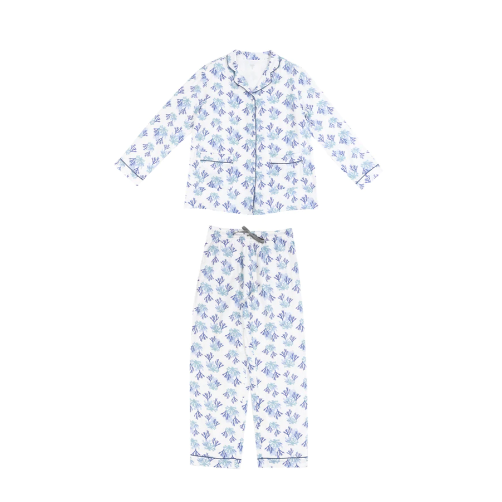 Women's Bamboo Long Sleeve Button-up PJ Set - Blue Reef