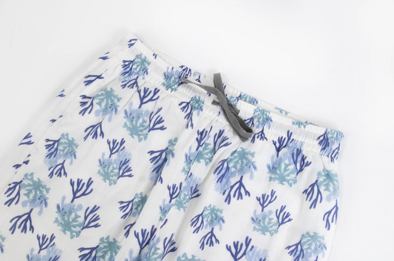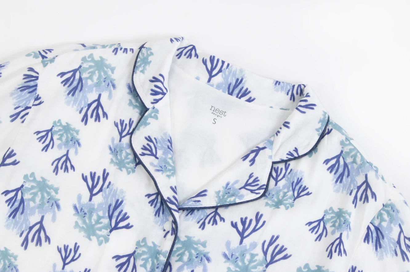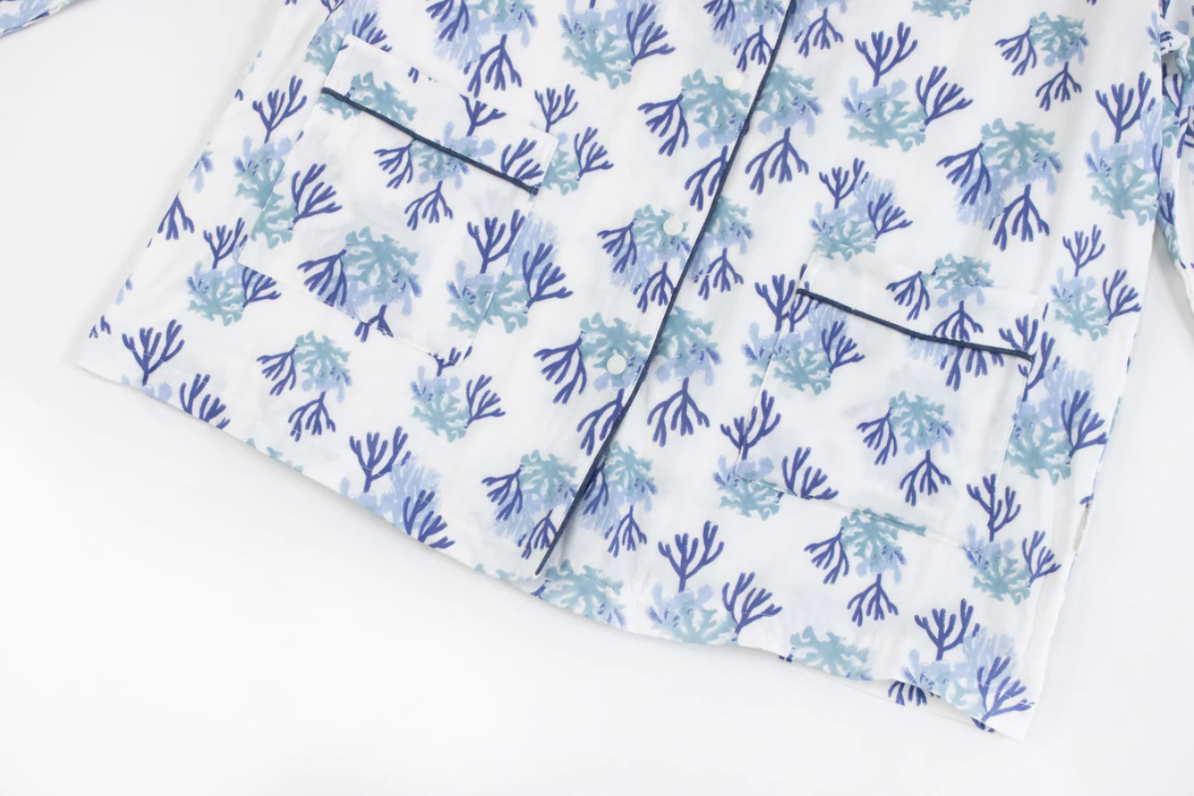 This Blue Reef print comes from our SS22 collection, By the Sea. It was inspired by the ocean’s versatile and beautiful blue coral, which serves as food, homes, and protection for many aquatic species.