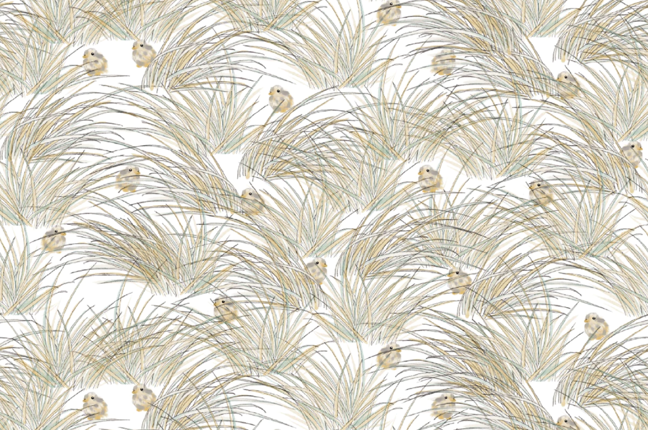 This Seagulls & Seagrass print comes from our SS22 collection, By the Sea. This print tells the story of playful seagulls dancing to the sounds of the ocean, while the seagrass from the ocean floor sways along.
