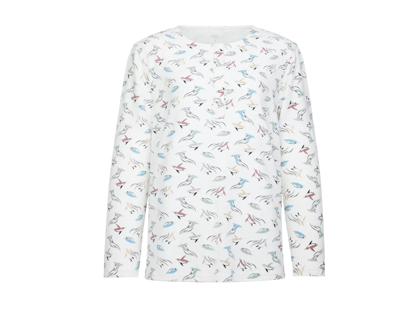 Our Women's Organic Cotton Long Sleeve Nursing PJ set is the ultimate choice to buy as a gift for yourself or a new mama in your life. This PJ set comes in our Rainbow Swim print from our FW22 Polar Pals collection and matches our baby sleep sacks, sleep bags and toddler PJs - making the perfect Mommy & Me matching set. The premium 100% GOTS certified organic cotton is super soft against your skin and is durable enough to wear through the night and into your mornings. Organic cotton is grown without any harmful chemicals or GMOs - a better choice for you, your baby, and the planet. It features quick snaps along the front of the shirt for easy nursing access and comes with an elastic waistband with adjustable tabs, perfect for whether you are pregnant, postpartum, and even after you've long had your baby.