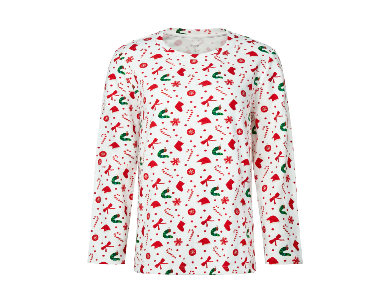 Lounge in comfort in our Women’s Long Sleeve Pocket Tee PJ Set. Made from premium GOTS certified organic cotton, these PJs are soft and breathable. Organic cotton is grown without any harmful chemicals or GMOs, is softer than regular cotton and is gentler on your skin. The drawstring on the bottom’s elastic waistband makes it comfortable to wear whether you are pregnant, postpartum, or any time before or long after you've had your baby. The PJ’s top features a pocket with a printed trim with matching bottoms in our Candy Cane Lane print, a part of our exclusive Eric Carle Holiday Capsule. This PJ set will quickly become an essential in your nighttime wardrobe!
